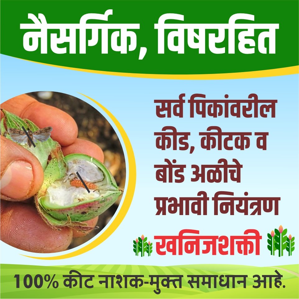 सर्व पिकांवरील कीड, कीटक व बोंड अळीचे प्रभावी नियंत्रण नैसर्गिक, विषरहित, भरघोस गुणवत्तापूर्ण उत्पादनासाठी खनिज शक्ती !